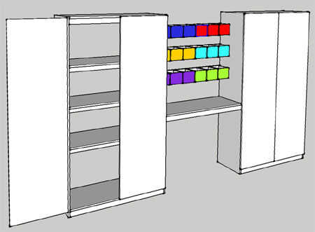 Se refieren a depósitos de almacenamiento de hardware Simple para la instrucción en la fabricación de los recipientes de almacenamiento de información doble la cantidad si usted planea hacer dos armarios y un estante extra y delantal para la encimera del centro.