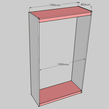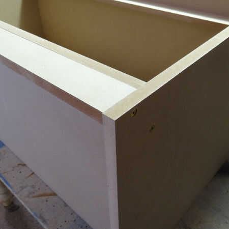 Los delantales se enroscan en las secciones superior y base. Los lados fueron Unidos a estas secciones por perforación agujeros avellanados por los costados y en la plataforma y el delantal - ver imagen.