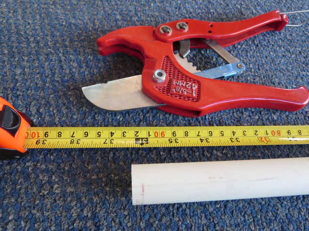 primero usted necesita cortar el tubo de PVC para una espada normal creo que 3 pies de PVC es bueno. Utilice el cortatubos para cortar el PVC a la longitud deseada.