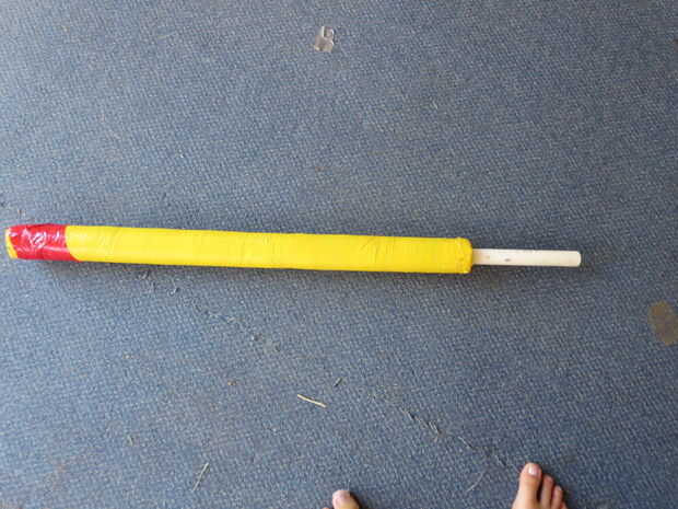 Uno de los longswords necesita un mantenimiento, así que lo desgarró y lo pones de nuevo juntos para demostrar cómo suelen construir armas de Jugger.Para este proyecto necesitarás:conducto de PVC de 3/4"(20mm)3/4"(20mm) aislamiento de la pipa de