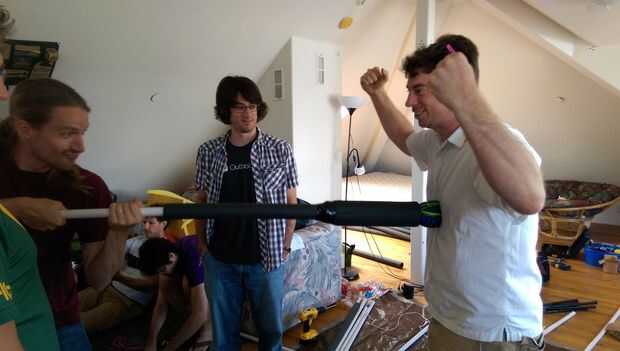 ¡ ALTO! Antes de continuar: siempre, siempre, siempre huelga-prueba tus armas en ti mismo antes de que otros usan. No utilice POMPFEN tienes no huelga probado jugar JUGGER. Coge tu primera arma y tener a un amigo le swing: comienzo con golpes suaves y poco a poco aumento fuerza de allí. Usted debe ser cómodo tomando moderadamente fuertes golpes a todas las partes del cuerpo excepto la cabeza y la ingle. Si no estás cómodas con eso, necesita más acolchado, acolchado mejor o ambos.