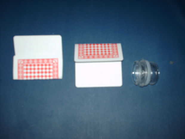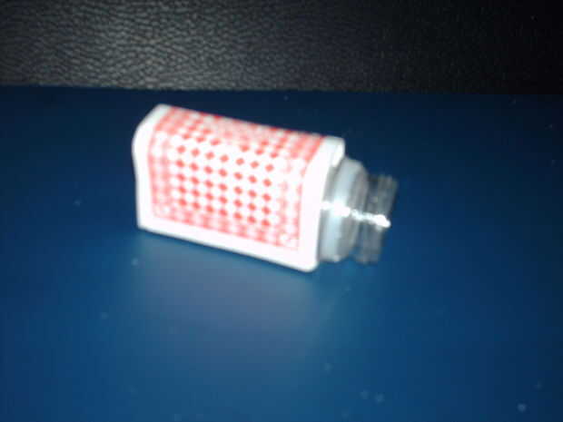 Esto es pastel... Bueno, en realidad es dos tarjetas sobre plástico. Doblar las dos cartas algo en tercios, el espacio en el centro sólo necesita ser lo suficientemente grande para la boca de la botella de plástico. Después de aplicar el pegamento a los lados de las tarjetas (debe alcanzar un prisma rectangular, como en las fotos), palillo de la boca de la botella a un lado. La parte de rosca debe quedar fuera.