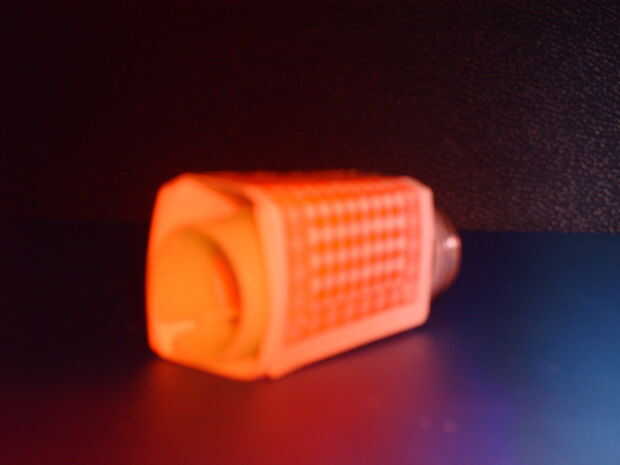 En el lado opuesto, en el soporte del émbolo Ramune . La dirección que se enfrenta No importa. Aplicar una cantidad generosa de pegamento de algún tipo a dos piezas de plástico para mantenerlos firmemente en su lugar--una pistola de pegamento caliente realmente viene muy bien aquí, pero algo grueso como pegamento gorila o pegamento de madera sería muy bien.