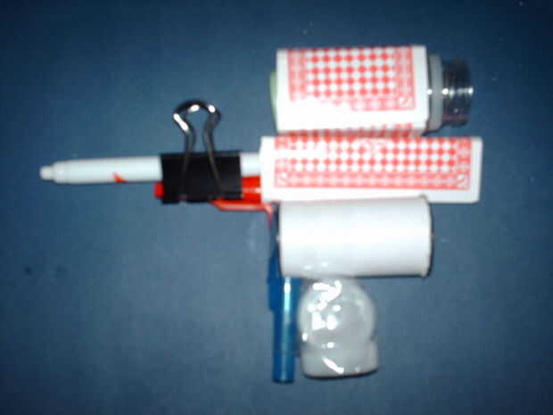 La cápsula en el mango está diseñada para actuar como una unidad de almacenamiento. Lanzar en algunas municiones y usted debe ser bueno para ir por un tiempo. Estoy abierto a sugerencias, y estoy trabajando en un dispositivo semiautomático con un mecanismo de gatillo y el perno de cierre de trabajo (está buscando al azar buena, pero no espero ver la luz del día), así que déjeme por favor saber sobre cualquier cosa que podía hacer para mejorarlo.
