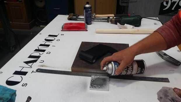 Rocíe una bonita piscina de plata sobre un trozo de cartón o un bloque de madera y use el paño para recoger en un movimiento de limpieza circular.