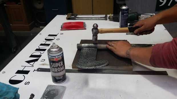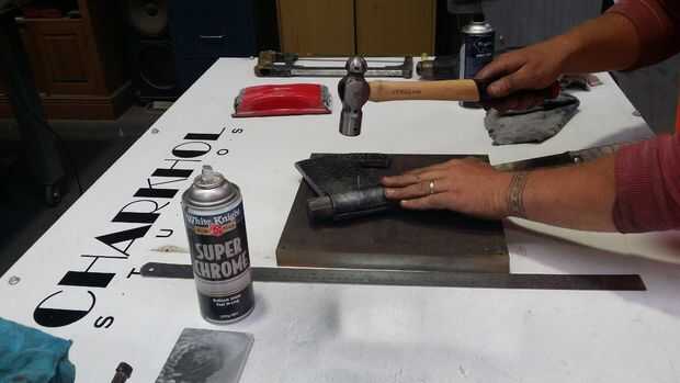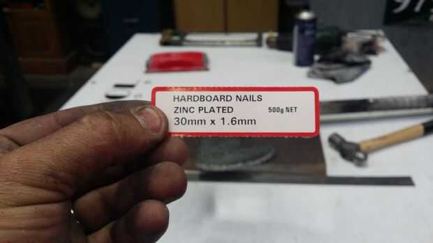 Utilizar clavos de madera muy pequeños, solo 30mm (1 pulgada) de largo y 1,6 mm de espesor. Martillo hasta que estén justo orgulloso de la cabeza del hacha.
