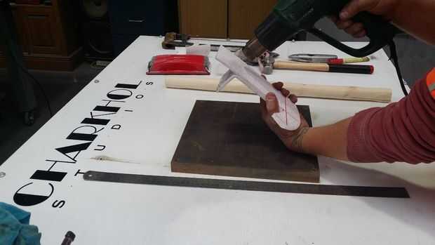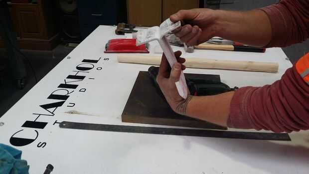 El calor se centran en la intersección del corte y la cabeza de hacha. La bandeja hacia adelante y hacia atrás hasta que la sección de corte comience a relajarse.