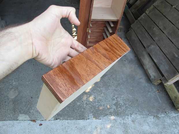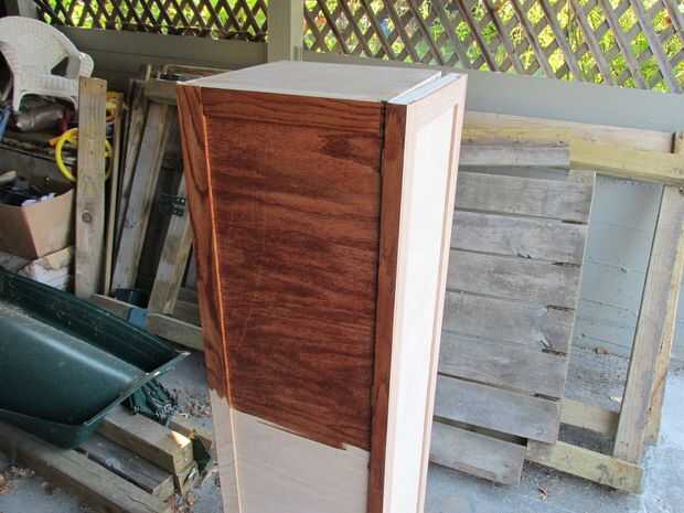 Parte más satisfactorio fue aplicar la mancha. Yo realmente reúne la cosa. Lea las instrucciones de la mancha. Apliqué la mancha, espere 15 minutos y luego limpiar el exceso. Tuve que limpiar exceso mancha otra vez después de aproximadamente una hora, parecía que la madera era sudor mancha en lugares.