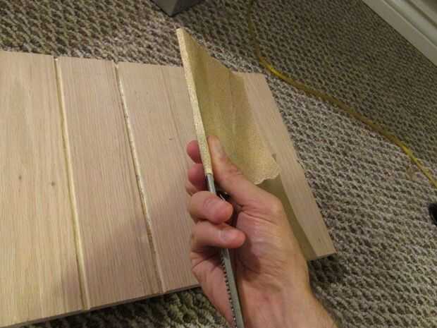 Para cortar las ranuras que tuve que hacer un corte de toda la longitud de la madera a la vez, la sierra era muy nervioso así que sujeta un trozo de madera como guía, que funcionó muy bien.