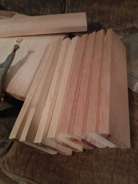 Poner en un bar de apalancamiento que se corta el 3 "x 14" delante y detrás, se respalda en más tarde, también comenzó con los frentes de cajón en 1' x 3/8", también tiene los bordes redondeados, siete cajones todos juntos, también consiguió la tapa corta y redondeada con el corte en el 14 1/2" x 1' 3/ 4"
