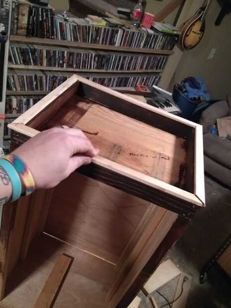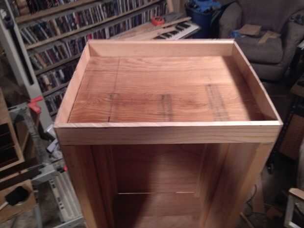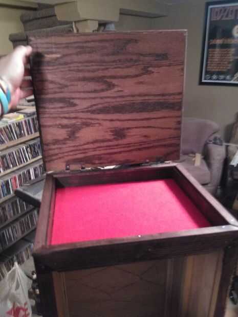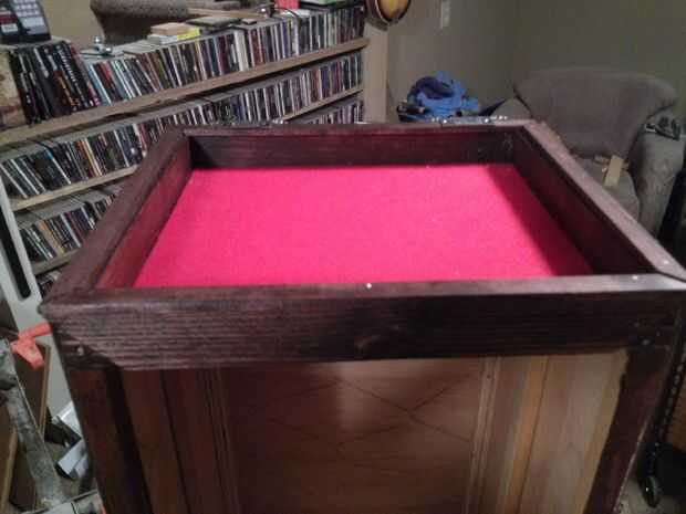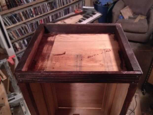 Hecho el corte de la cavidad interna de la tapa, esta puede ser la misma medida como la parte inferior (14 "x 1'), además de lados en (11"), lo manchado y puso en el fieltro, instala las bisagras y la tapa. También tiene el corte corte y teñido, esto es donde un poco había engañado y había comprado el formulario ajuste Ace Hardware, cosas bastante barato. Corte la moldura a la parte delantera y atrás lados siendo 12 1/2" y 14". Para la colocación en el sentido utilizan algunos baratos pegamento de todo propósito en la sección de babric de Wal Mart, no recuerdo la marca pero funcionó bien, blanco im seguro regular Elmer hará lo mismo, en el pedazo completo y funcionó una pluma alont los bordes de corte en las líneas, si está un poco pequeño en el corte de tela , no te asustes, Itll estar bien, con sólo pasar la tela y debe estirarse para caber.