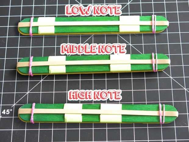 Usted está listo para un buen entretenimiento moda ol '! Golpe entre los dos palitos y la respiración hará que la goma a vibrar para hacer la música! Dependiendo de cuánto son tus dos bandas de post-it, se reproducirá notas diferentes. Esta es una gran introducción a los instrumentos de cuerda y tensión de la cuerda, tono, etc.. ¡Que te diviertas!