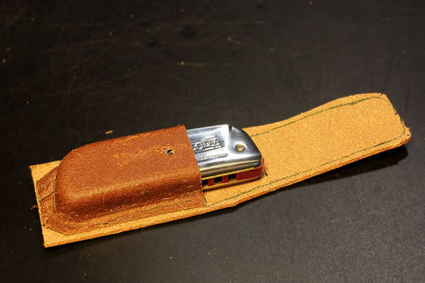 Después de que se seque puede recorte el exceso. Haz la parte frontal de la mitad de su caso y corte una tira de cuero que servirá como su aleta trasera y cierre. Tiene que ser lo suficientemente largos para llegar al punto donde vas a fijar el botón snap, pero es mejor dejar algunos excesos, para que usted puede cortar y forma de la aleta sin embargo quiero.