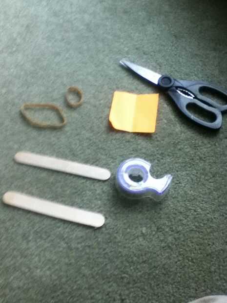 espero que les guste esto. Disfrutar :-)Paso 1: Se necesita Tijeras2 palitos1 banda de caucho2 pequeñas bandas de cauchouna paja de plásticoPaso 2: corte 2 piezas de la paja que son 1 pulgada en longitudPaso 3: tome la goma y poner alrededor de 1 pal