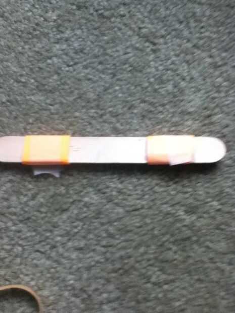espero que les guste esto. Disfrutar :-)Paso 1: Se necesita Tijeras2 palitos1 banda de caucho2 pequeñas bandas de cauchouna paja de plásticoPaso 2: corte 2 piezas de la paja que son 1 pulgada en longitudPaso 3: tome la goma y poner alrededor de 1 pal