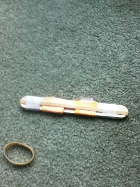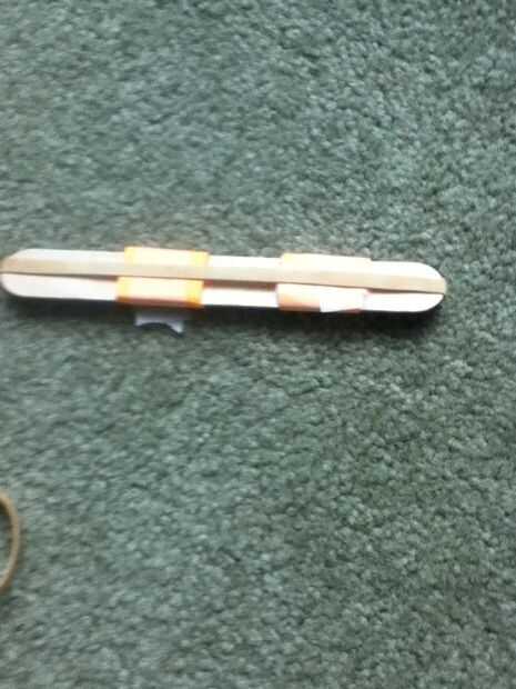 Poner los portaobjetos en un palito. A continuación poner una banda elástica a lo largo de la palanca con las diapositivas. Finalmente con cinta adhesiva los dos palitos juntos.