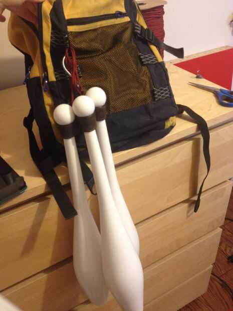 Soy un malabarista de Montreal y como más financieramente desafió a los jóvenes, yo soy financieramente desafió. Esto no ha hecho nada para amortiguar mi obsesión con arrojando fuego cosas alrededor, pero hace un impacto en qué apoyos malabares puedo comprar. Una cosa que noté menos carente, en la mayoría de fue un arnés malabares del club. Este fantástico dispositivo permitiría un malabarista transportar clubes fuera de la bolsa de viaje espacial pobre, o servir como un útil portador de un lado del recinto ferial de renacimiento a otro. Puede fácilmente ser adaptada para más de tres clubes o antorchas con una simple adición de fundas.
