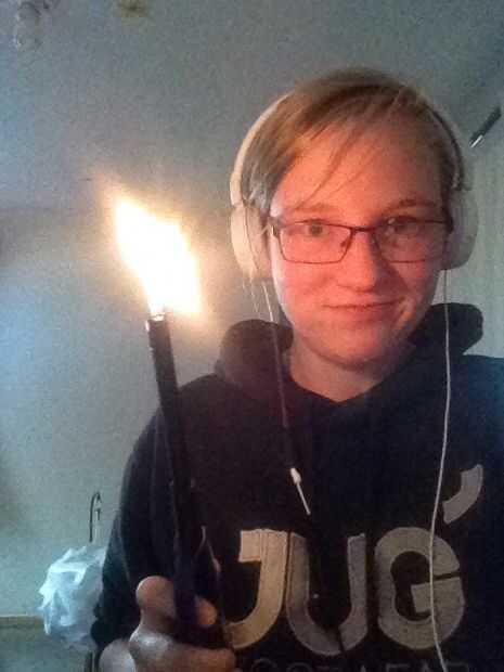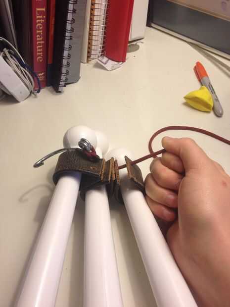 Si está usando un broche de la correa o cordón elástico para un clip de seguridad, ahora es donde se rosca a través el conjunto inferior de agujeros, exactamente como el paracord. Atar firmemente y quemar los extremos para sellarlos. ¡ FUEGO!