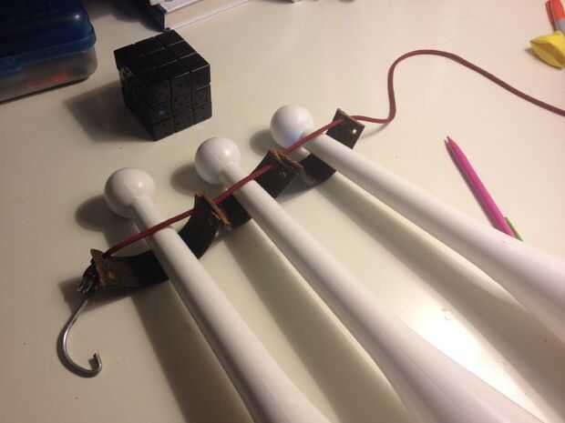 Para utilizar, tender el tramo con las cuerdas hacia arriba para que se vea como las olas. Coloque los clubes en cada una de las pistoleras y tire de la cola de la cuerda como un lazo.