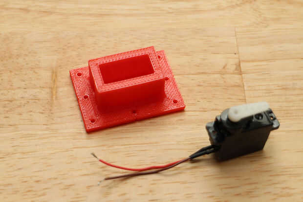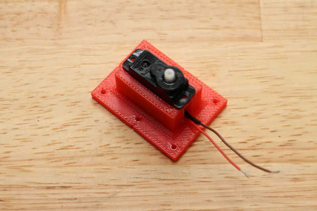 Tener impreso el micro servo montaje, amenaza los cables por el agujero cerca de la base. (La. Se adjunta archivo STL)