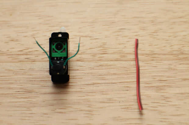 Corte una longitud de los cables de servo original y tira de los extremos.