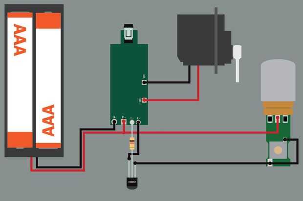 Suelde los cables del motor a los M + y M-pastillas respectivamente. La polaridad no importa para esta conexión, ya que sólo podemos voltear el cuerno del servo para que coincida con el movimiento que queremos.