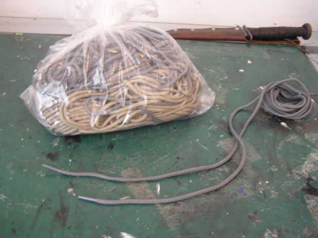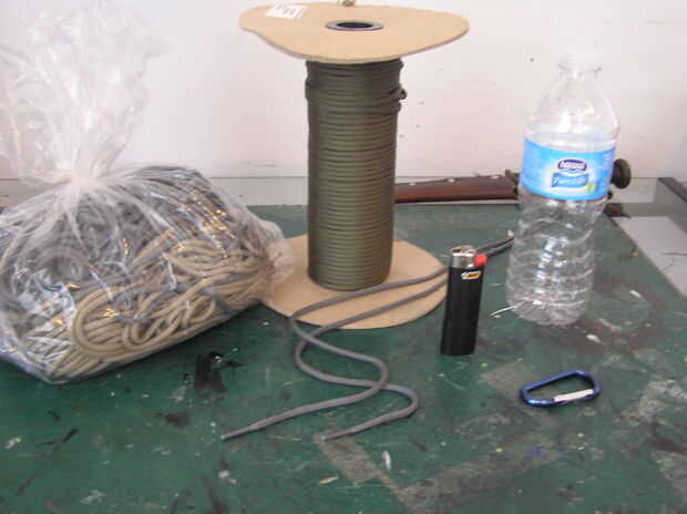 -Longitudes de 80 pulg dos de paracord, cordones de zapatos o llano paracord. (Yo usé dos cordones de los zapatos)