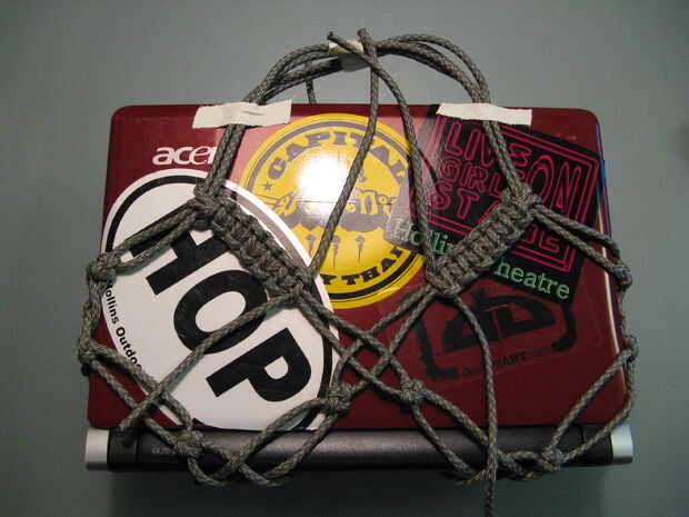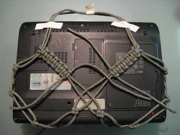 Antes su puntada cobra demasiado, asegúrese de que usted tire los hilos tenso hasta que usted está tirando de la manija de cinta un poco. Esto mantendrá el portátil mucho reborde en el mazo y mantenerse a salvo.