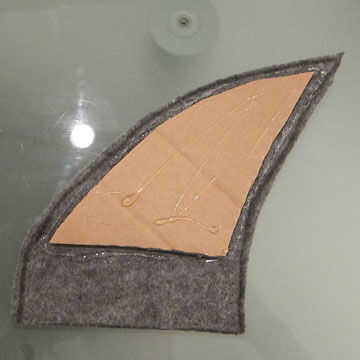 Paso 6 - lugar su aleta de cartón sobre el fieltro. Usted quiere asegurarse de que existe un margen decente de fieltro alrededor de la cartulina para pegar. Si no hay un margen, que tendrás que cortar la cartulina un poco.