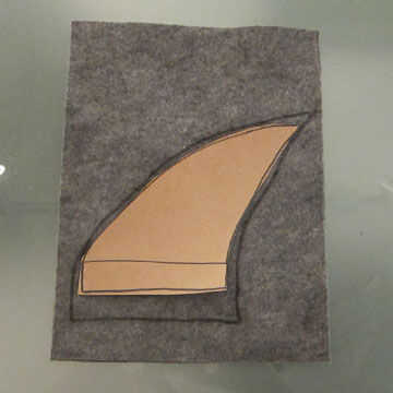 Paso 4 - cortar la aleta de papel, póngala en la doble capa de fieltro y traza el contorno. Al trazar el contorno, dejar un margen pequeño de papel. Corte la forma de aleta que ha trazado.