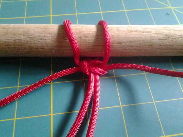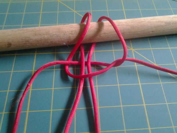 Ahora es el momento de empezar la puntada de Cobra. todo lo que necesitas hacer es tirar el cable para que dos "hebras" bajar a la mitad con los dos extremos de los lados. Llamemos a la izquierda "A" y el de la derecha "B". El siguiente paso corresponde a la siguiente foto. Ahora toma "A" y traer