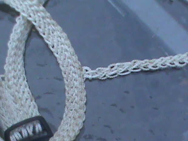 1) cuando usted está en la adecuada longitud acople sus puntadas de cadena 3 a la derecha del centro de su primera correa.