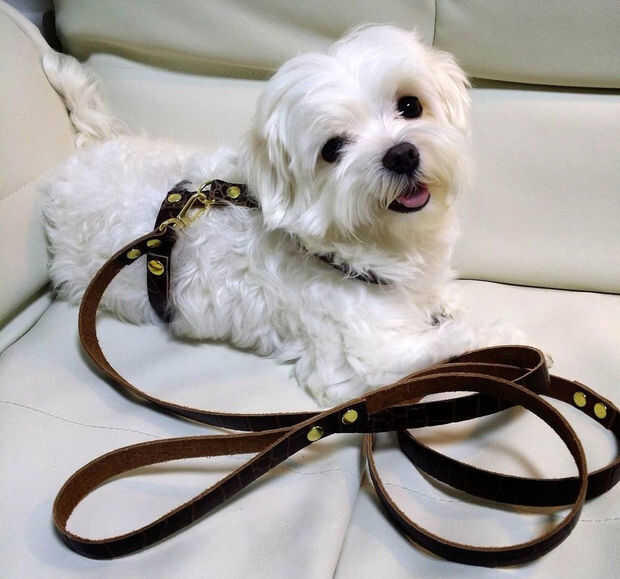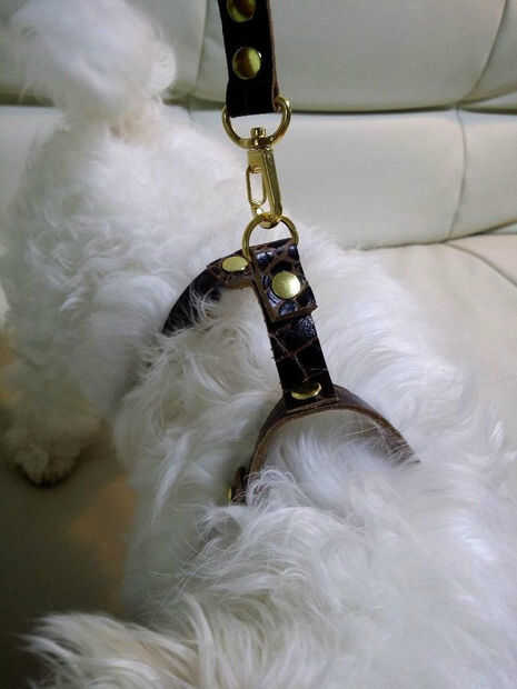 Realmente mi perro está enfermo. Nombre de mi perro es "Yong Yong", se produjo el problema en el cerebro cuando un año de edad. Así que no andan bien. En los tres meses de vida, dijo el hospital. Pero, ahora Yong Yong es cuatro años. Creo que esta mejor la enfermedad. Espero poder caminar juntos algún día. Así que hice este collar de perro de cuero y correa!