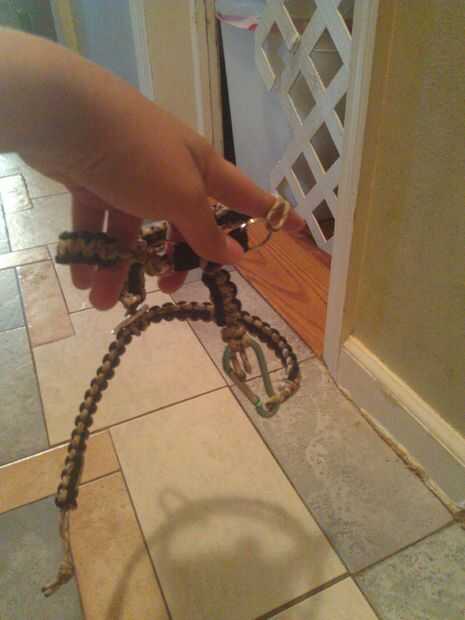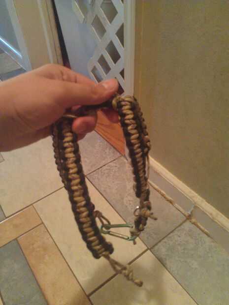 Hice el arnés con la armadura de cobra. Atado de los extremos, derretidos el los talones que cuelgan hacia fuera en el interior para una mirada más limpia y constantemente revisado para asegurarse de que he dejado un poco flojo para mantenerlo cómodo. Para hacer el tejido, usé la proporción 9:1. Básicamente, si la circunferencia del cuello de su mascota es de 10 pulgadas, luego multiplicas eso por 9 y figura necesita 90 pulgadas de cuerda para el tejido. Si estás haciendo un tono dual para el tejido, dividir por 2 para saber cuánto necesita de cada color. Tal vez añadir un poco para compensar para la fusión de las cuerdas juntas.