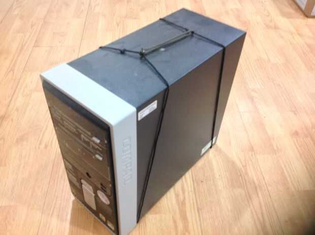 A continuación, tomar la longitud de largo 41 pulgadas y ponerlos alrededor de la computadora, asegurándose de que están cerca de los nudos del mango.