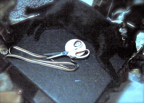 Con las tijeras, corte una sección de fleje2.5 x tanto tiempo como la circunferencia que mide apenas. Aquí mamá de Giacomo, MaReine (con otro ojo, realmente) helicópteros cerca para supervisar el progreso de guardarropa de su hijo.