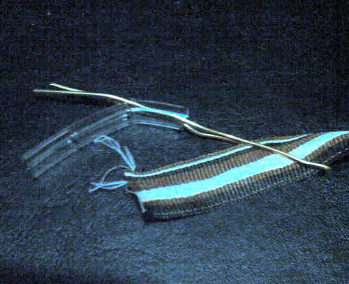 Tire de la imperdible la manera vino a tirar el extremo del fleje en el extremo del tubo y a través de la ranura. Nota: esto debe ser bastante difícil de hacer. Ahora que la fricción estamos luchando es lo que evitará que el arnés de suelta innecesariamente.