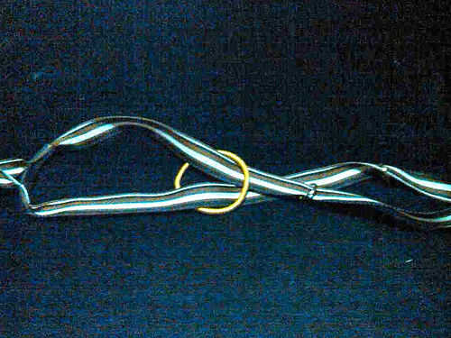 Puedes ver aquí que termina envuelto alrededor de un radio muy pequeño. Si tuviera un cierre duro, sobresalen los extremos de la misma. Le apetece un pincho de barbacoa pegado transversalmente en el nudo de una corbata.