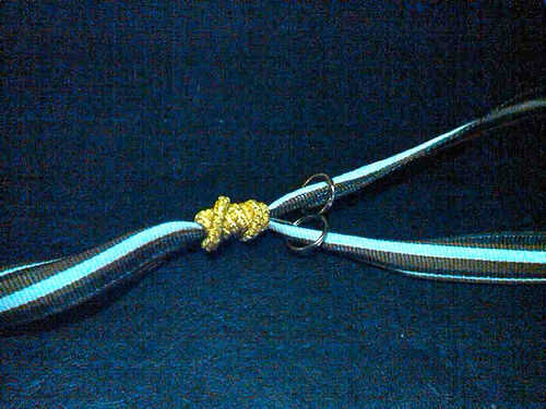 Hacer lo mismo con el segundo pelo elástico, para que los vínculos de correa están atrapados entre los dos deslizadores de pelo elástico basado en.