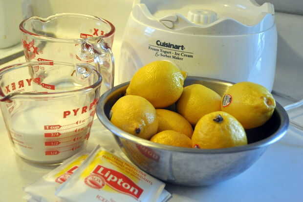 Ahora al igual que Arnold Palmer consiste en partes iguales iced tea y limonada esta receta es sólo una mezcla 50/50 de sorbete de limón y sorbete de té negro.