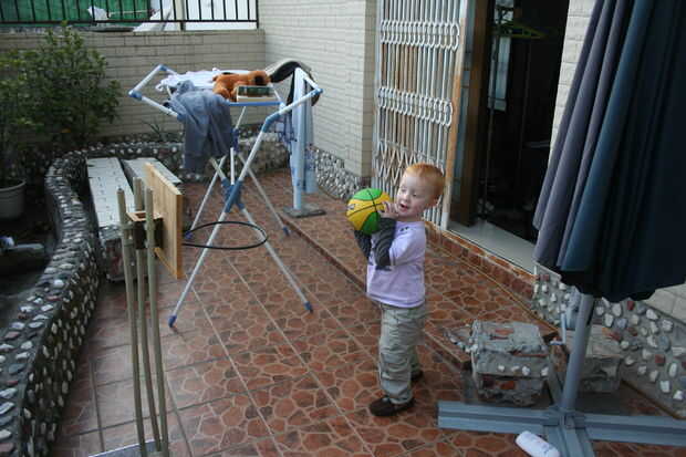 Es un dolor que limpiar su habitación, con los lentos movimientos repetitivos del codo hacia abajo, recoger, poner en la cesta que se lava, agacharse, recoger, poner en la cesta que se lava, sobre y sobre y sobre...Pero el aro de pelota increíble lav