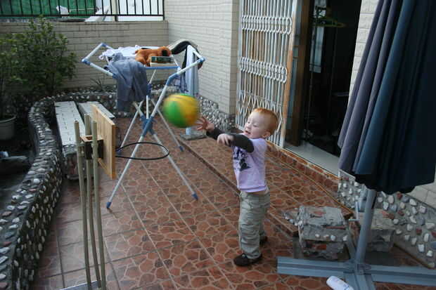 Es un dolor que limpiar su habitación, con los lentos movimientos repetitivos del codo hacia abajo, recoger, poner en la cesta que se lava, agacharse, recoger, poner en la cesta que se lava, sobre y sobre y sobre...Pero el aro de pelota increíble lav