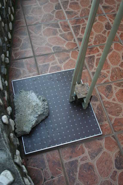 Si es necesario, puede encontrar algo pesado para poner en la placa que hace que el pie.