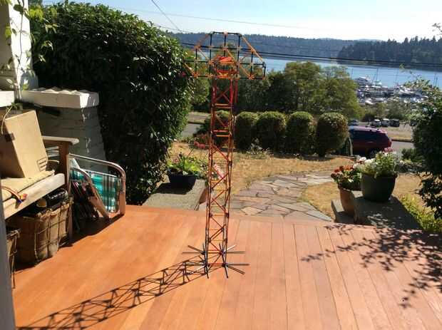 Conecte las barras del rojo a los conectores blancos y gris. Una pelota de tenis funciona realmente bien.