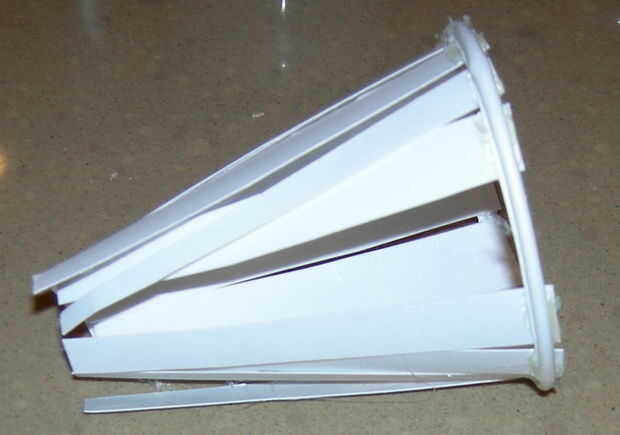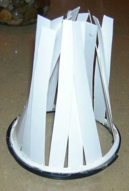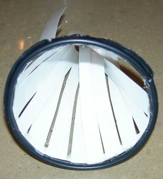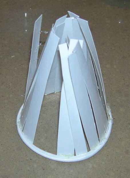 Quite la tapa y le cortó el labio de ella. luego tomar un trozo de alambre y correr por el interior del labio de la tapa para soporte. es la llanta. Ahora tome el labio de la Copa y el pegamento en la tira de la taza de café sobre la misma longitud. pegue los en el interior del labio de la Copa. Este pegamento a la llanta. usted fuera todo esto para evitar que se derritan el borde tanto como sea posible.