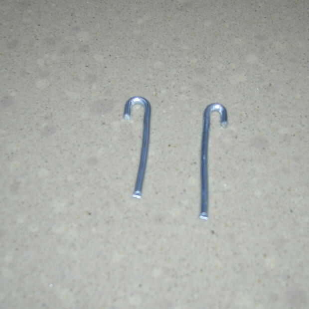 tomar dos trozos de alambre y doblar en forma de bastón de caramelo. poner pegamento en la parte superior de la parte posterior de la llanta en dos lugares al lado del otro. diapositiva la las piezas de alambre en el borde donde pusiste el pegamento. mientras el pegamento seca abrazadera abajo en la en el alambre y el borde para apretar el lazo. Ahora tome dos pequeñas plazas de copa y pegue cada uno en un trozo de alambre y oprima en el marco cerca de la mitad inferior del tablero.