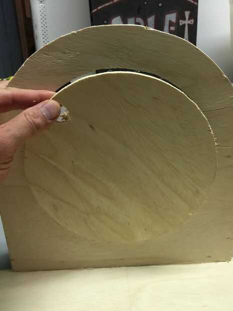 Agujero con jigsaw utilicé un disco volador que tenía un agujero y lo trazado.