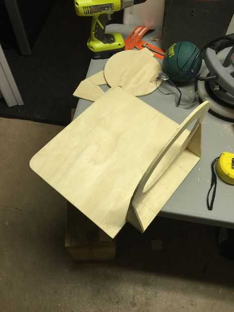 Ahora utilice una pistola de pegamento y trabajan a una velocidad constante y pensar en lo que quieres pegar antes de hacerlo. Parece lógico, pero traté de pegar las piezas de ángulo lateral en primera y simplemente no funcionan bien en ese orden porque el aro es más fuerte con una gota de pegamento en la parte trasera primero.