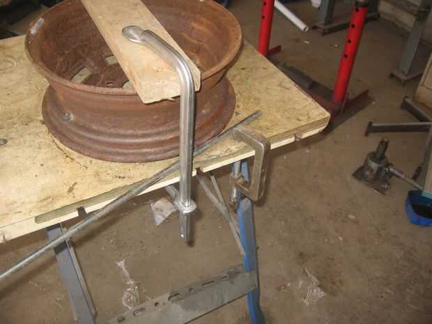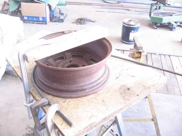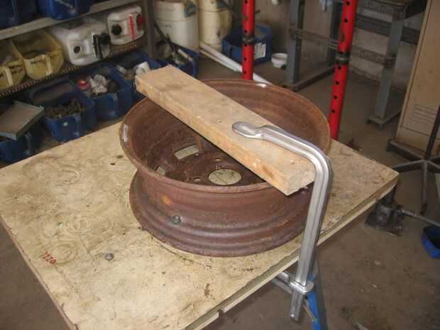 Encontré una vieja llanta del tamaño correcto, pero usted puede necesitar cortar un disco de madera. una vez que su ex la abrazadera a la banca.