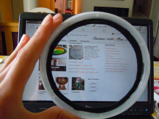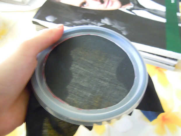 Tengo una idea de corte la tapa en un punto, luego enhebrar alambre a través de la tapa, por lo que sería más como un aro de bordar comerciales, pero realmente no probarlo. Me interesaría saber si eso realmente le funciona.